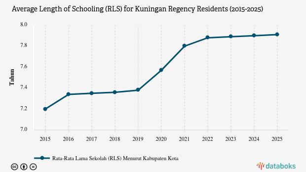 The average length of schooling (RLS) for residents aged 25 and over in Kuningan, West Java, was 7.91 years in 2025.