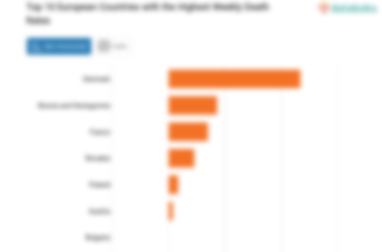 Next is Bosnia and Herzegovina, which recorded 42.86 percent more deaths than the previous week. The number of deaths in this country was reported as 10, higher than the seven deaths recorded the previous week. Deaths in France increased by 34.84%, Slovakia recorded 27 deaths (up 22.73%), and deaths in Poland increased by 8.33%.