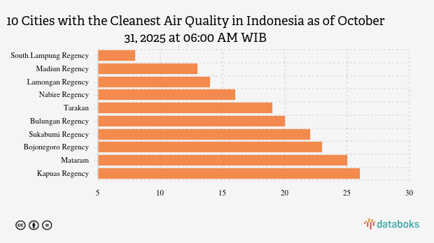 The air quality in South Lampung Regency this morning is the cleanest in Indonesia. Based on the air quality index from the Ministry of Environment and Forestry (KLHK), South Lampung Regency scored 8 on Friday (10/31/2025) at 06:00 AM WIB.