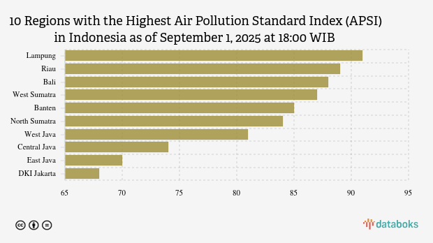 Here is a list of the 10 provinces with the worst air quality index in Indonesia on Monday, September 1, 2025 at 18:00 WIB.