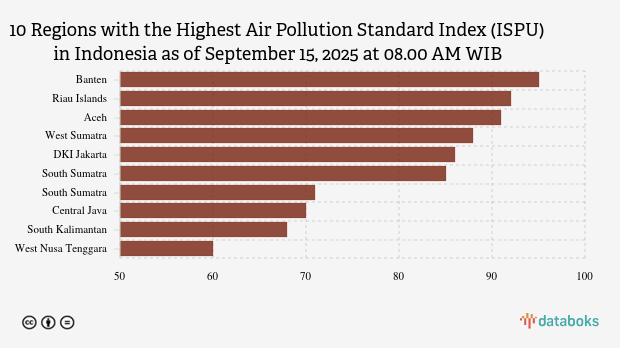 Here is the list of the 10 provinces with the worst air quality index in Indonesia on Monday, September 15, 2025, at 08.00 AM WIB.