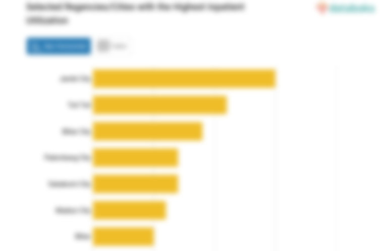 The five regencies/cities with the highest inpatient utilization, exceeding 1.2 patients per 100,000 population/week, are Jambi City, Toli Toli, Blitar City, Palembang City, and Sukabumi City, with values of 1.97 patients per 100,000 population/week, 1.65 patients per 100,000 population/week, 1.37 patients per 100,000 population/week, 1.25 patients per 100,000 population/week, and 1.2 patients per 100,000 population/week, respectively.