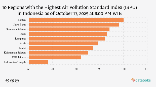 Here is a list of the 10 provinces with the worst air quality index in Indonesia on Monday, October 13, 2025, at 6:00 PM WIB.