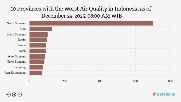 At that time, Ambon's air quality was categorized as "good," meaning pollutant levels were very minimal. Padang ranked second with an air quality index of 30, followed by Serang in third place with an index of 31.