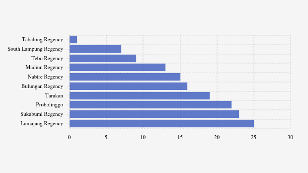 - Lumajang Regency (East Java): 25