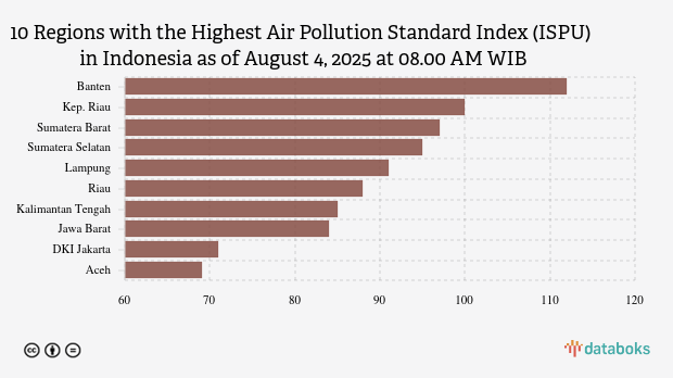 Air quality in Banten this morning is the worst in Indonesia. Based on the Air Pollution Standard Index (ISPU) page of the Ministry of Environment and Forestry (KLHK) on Monday (August 4, 2025) at 08.00 AM WIB, it was revealed that the air quality index in Banten was 112.