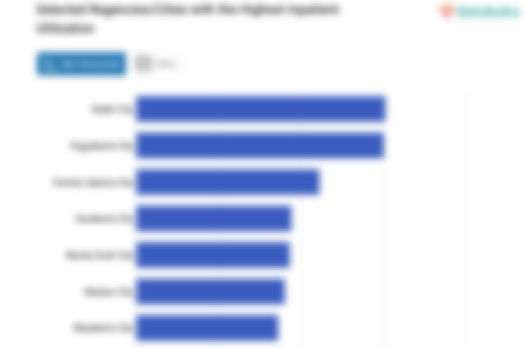 The five regencies/cities with the highest inpatient use, exceeding 14.27 patients per 100,000 population/week, are Kediri City, Yogyakarta City, Central Jakarta City, Surakarta City, and Banda Aceh City, with respective values of 20.14 patients per 100,000 population/week, 20 patients per 100,000 population/week, 16.09 patients per 100,000 population/week, 14.43 patients per 100,000 population/week, and 14.27 patients per 100,000 population/week, respectively.