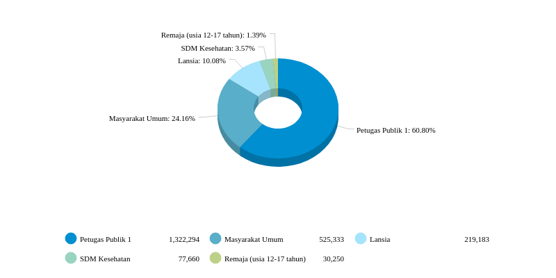 For public service personnel, with a target of 879,800 people. The vaccination rate in phase 1 is reported to have reached 1.32 million people (150.3 percent of the target), and for phase 2 vaccinations reached 99.23 percent, or 873,010 people were successfully vaccinated.