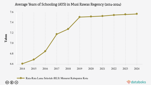 The AYS for Musi Rawas residents increased by 0.01 years (0.13%) compared to the previous year, which was 7.56 years. Meanwhile, in the last five years, the AYS has risen by 0.06 years (0.8%).