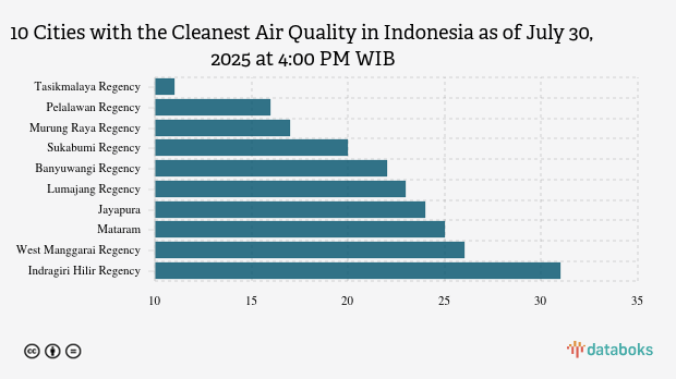 The following is a list of the 10 cities with the cleanest air quality in Indonesia according to KLHK on Wednesday, July 30, 2025, at 4:00 PM WIB.
