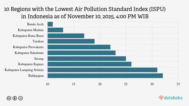 Here is the complete list of the 10 cities with the cleanest air quality in Indonesia according to KLHK on Monday, November 10, 2025, at 4:00 PM WIB.