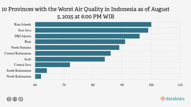 Here is the list of the 10 provinces with the worst air quality index in Indonesia on Tuesday, August 5, 2025 at 6:00 PM WIB.