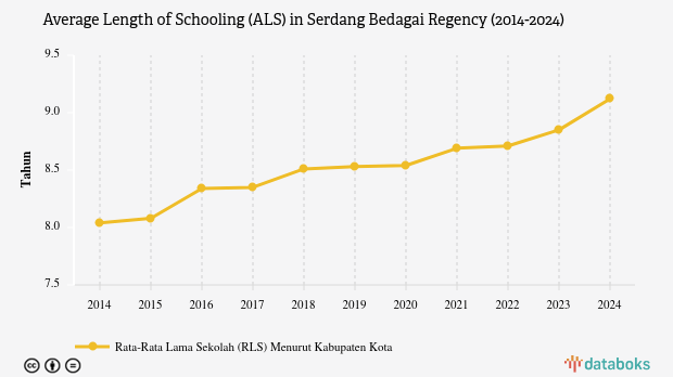 The average length of schooling (ALS) for residents aged 25 years and above in Serdang Bedagai, North Sumatra, reached 9.12 years in 2024.