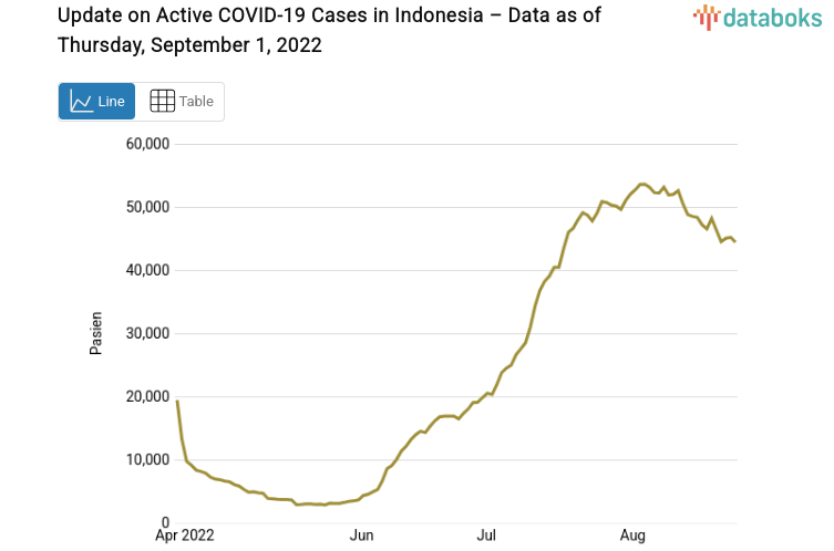 Active Covid-19 cases in Indonesia have decreased today. According to the Covid-19 Task Force report, the number of active Covid-19 cases in Indonesia is now 44,434 as of Thursday, September 1st, 2022.