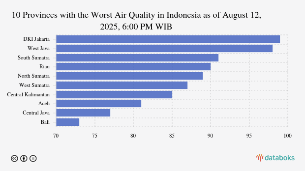 Here is a list of the 10 provinces with the worst air quality index in Indonesia on Tuesday, August 12, 2025, at 6:00 PM WIB.