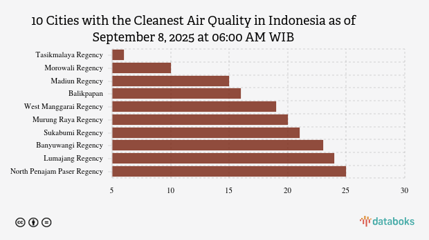 Here is a list of the 10 cities with the cleanest air quality in Indonesia according to KLHK on Monday, September 8, 2025 at 06:00 AM WIB.