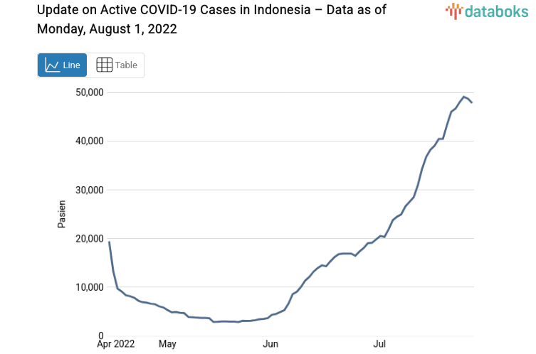 Active Covid-19 cases in Indonesia are currently declining again. According to a report from the Covid-19 Task Force, the number of active Covid-19 cases in Indonesia is now 47,809 as of Monday, August 1, 2022.