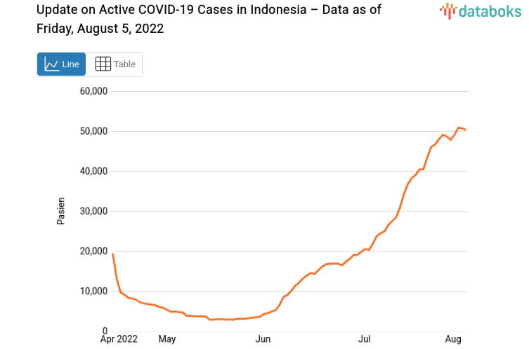 Active Covid-19 cases in Indonesia are currently declining again. According to a report from the Covid-19 Task Force, the number of active Covid-19 cases in Indonesia is now 50,300 as of Friday, August 5, 2022.
