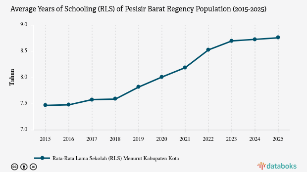 The average years of schooling (RLS) for residents aged 25 and above in Pesisir Barat, Lampung, reached 8.76 years in 2025.