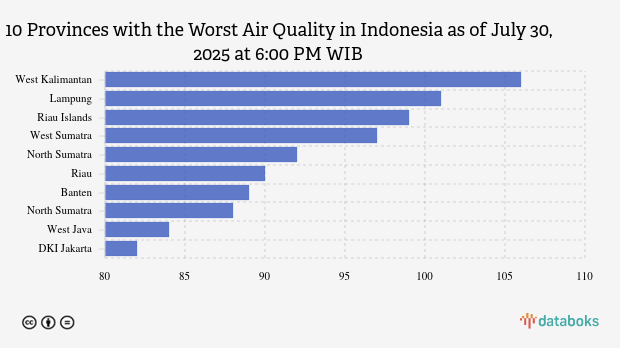 Here is the list of 10 provinces with the worst air quality index in Indonesia on Wednesday, July 30, 2025 at 6:00 PM WIB.