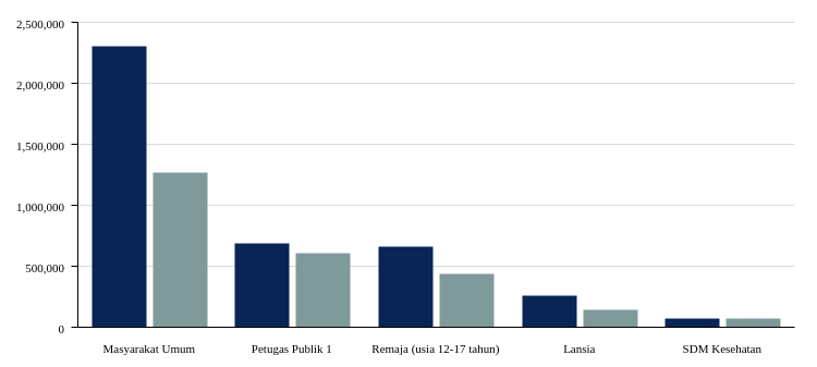 For public sector workers, the target was 694,480 people. The first dose vaccination reached 691,020 people (99.5% of the target), and the second dose reached 86.8%, or 602,820 people.
