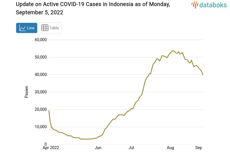 Active Covid-19 cases in Indonesia have decreased today. According to a report from the Covid-19 Task Force, the number of active Covid-19 cases in Indonesia is now 39,689 as of Monday, September 5, 2022.