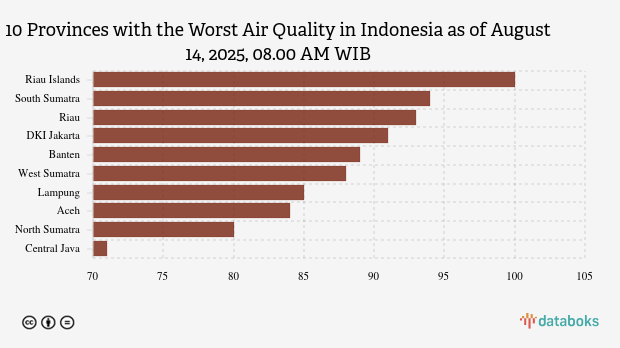 Here is a list of the 10 provinces with the worst air quality index in Indonesia on Thursday, August 14, 2025, at 08.00 AM WIB.