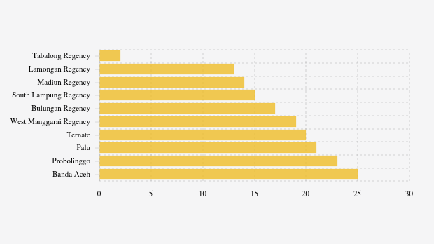 - West Manggarai Regency (East Nusa Tenggara): 19