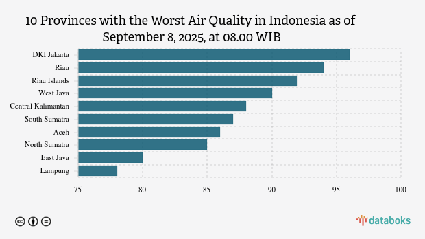 Here is a list of the 10 provinces with the worst air quality index in Indonesia on Monday, September 8, 2025, at 08.00 WIB.