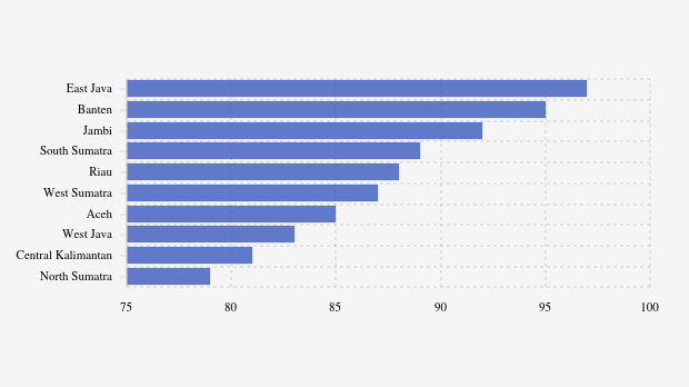 Below East Java, Banten ranks second worst in Indonesia with an air quality index of 95. Then, in third place is Jambi with an air quality index of 92.