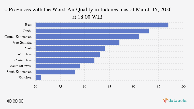 Below is the list of 10 areas with the cleanest air quality in Indonesia according to KLHK as of Sunday, March 15, 2026 at 4:00 PM WIB.