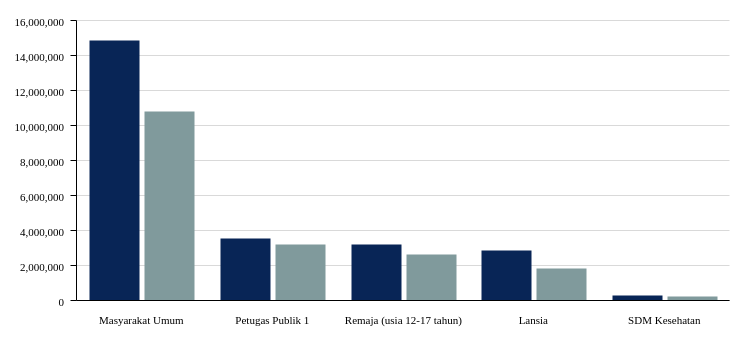 Public sector workers had a target of 2.07 million people. The first dose vaccination reportedly reached 3.52 million people (169.87% of the target), and the second dose reached 153.68% or 3.18 million people.
