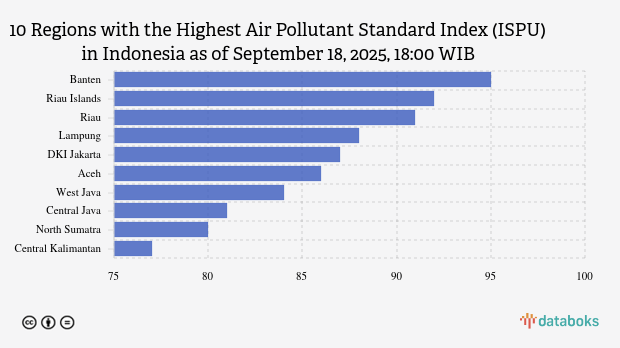 Here is a list of the 10 provinces with the worst air quality index in Indonesia on Thursday, September 18, 2025, at 18:00 WIB.