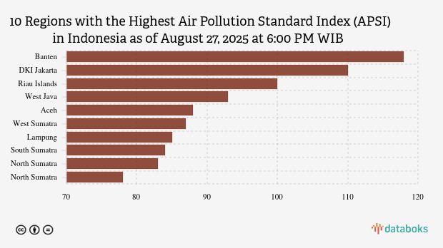 The following is a list of the 10 provinces with the worst air quality index in Indonesia on Wednesday, August 27, 2025 at 6:00 PM WIB.