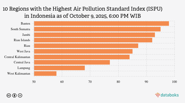 Here is a list of the 10 provinces with the worst air quality index in Indonesia on Thursday, October 9, 2025, at 6:00 PM WIB.