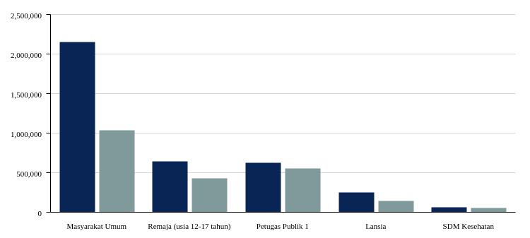 For the vulnerable general public, the target was 4.37 million people. The first dose was administered to 2.15 million people (50.03% of the target). The second dose reached 24.45% or 1.04 million people.