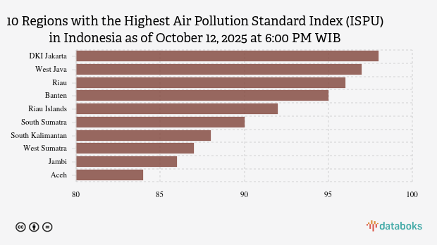 Here is a list of the 10 provinces with the worst air quality index in Indonesia on Sunday, October 12, 2025 at 6:00 PM WIB.