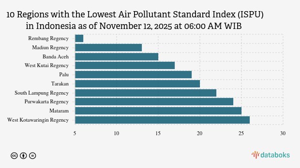 Rembang Regency's air quality this morning is the cleanest in Indonesia. Based on the air quality index version of the Ministry of Environment and Forestry (KLHK), Rembang Regency had a score of 6 on Wednesday (12/11/2025) at 06:00 AM WIB.