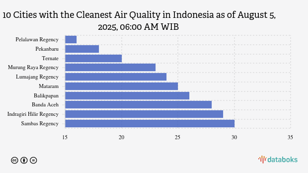 Pelalawan Regency's air quality this morning is the cleanest in Indonesia. Based on the air quality index by the Ministry of Environment and Forestry (KLHK), Pelalawan Regency had a score of 16 on Tuesday (5/8/2025) at 06:00 AM WIB.