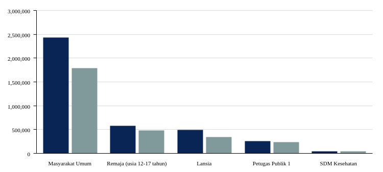 The vulnerable general public target was 2.9 million individuals. The first dose vaccination reached 2.43 million individuals (83.92% of the target), while the second dose reached 61.82% or 1.79 million individuals.