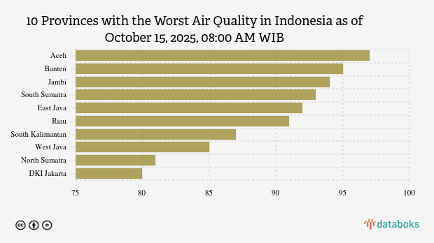 Here is a list of the 10 provinces with the worst air quality index in Indonesia on Wednesday, October 15, 2025, at 08:00 AM WIB.