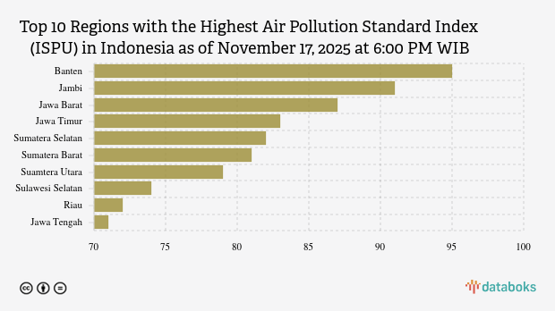 Here is a list of the 10 provinces with the worst air quality index in Indonesia on Monday, November 17, 2025, at 6:00 PM WIB.