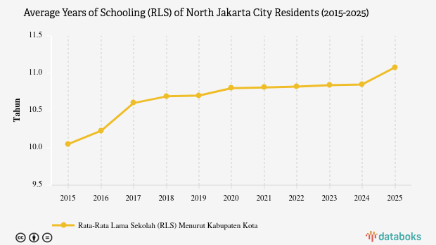 The average years of schooling (RLS) for residents aged 25 years and over in North Jakarta City, DKI Jakarta, was 11.08 years in 2025.