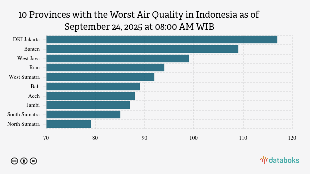 Here is a list of the 10 provinces with the worst air quality index in Indonesia on Wednesday, September 24, 2025 at 08:00 AM WIB.