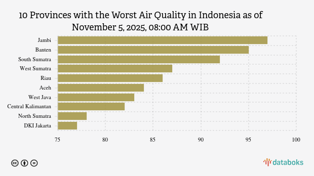 Here is a list of the 10 provinces with the worst air quality index in Indonesia on Wednesday, November 5, 2025, at 08:00 AM WIB.