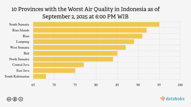 Here is a list of the 10 provinces with the worst air quality index in Indonesia on Tuesday, September 2, 2025 at 6:00 PM WIB.