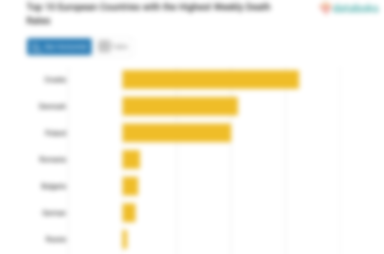 Croatia (Hrvatska) ranks first, with a weekly increase in deaths of 162.5 percent. Worldometer recorded 21 deaths in the country, an increase compared to the previous week's reported eight deaths.