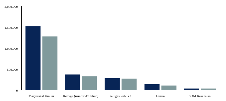 The vulnerable general public target was 1.97 million people. For the first dose, vaccination was reportedly given to 1.52 million people (85.39% of the target). The second dose reached only 72.65%, or 1.28 million people.