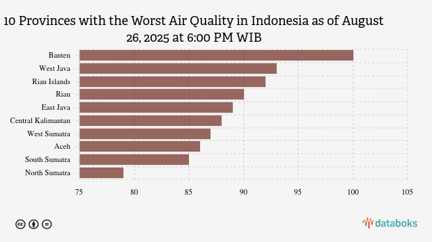 Here is a list of the 10 provinces with the worst air quality index in Indonesia on Tuesday, August 26, 2025 at 6:00 PM WIB.