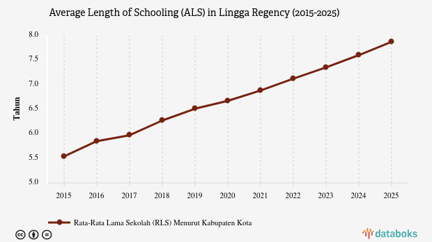 This ALS indicates that the average Lingga resident only attends school up to the 7th grade level. However, this ALS is still below the national average ALS of 9.07 years in 2025.